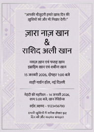 Soft lavender minimal indian muslim wedding invitation in hindi
