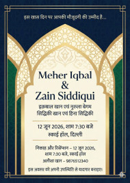 indian wedding invitation muslim wedding card hindi invitation modern design geometric arches gold border cmyk print ready custom palette elegant layout centered typography clean texture cultural theme refined motif contemporary style indian culture wedding announcement stylish aesthetic urdu tone minimal geometry event card sleek layout modern serif marriage invite professional print timeless look elegant composition gold line serene mood sophisticated theme google gemini nano banana promptImagine Buddy