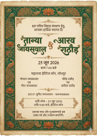 hindu wedding invitation indian wedding card hindi invitation emerald rustic palette peacock mandala lotus ornate border rustic aesthetic serif devanagari parchment background cmyk print ready symmetrical layout embossed details cultural design elegant hierarchy traditional aesthetic rich texture marriage invite indian ceremony card warm tones heritage style decorative pattern premium printing vintage charm balanced layout artistic border indian motifs authentic design regal rustic look google gemini nano banana promptImagine Buddy