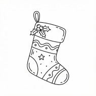 Festive christmas stocking with holly in simple line-art doodle google gemini prompt