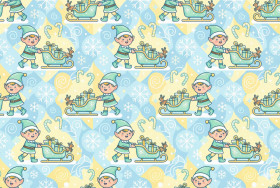 tiny elf sleigh charm christmas pattern seamless tile flat vector cheerful snowy field repeating motif pastel tones doodle style candy glaze texture winter symbols baby blue yellow accents holiday repeat geometric background sparkly details festive illustration cute pattern prompt google gemini nano bananaImagine Buddy