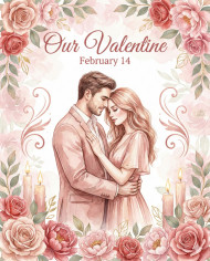 Watercolor couple with floral borders and candles for valentine’s poster google gemini prompt