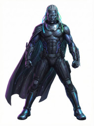 cyberpunk biomechanical humanoid tactical exosuit neon lighting heroic stance digital painting silver braided hair glowing eyes metallic implants athletic build nano-fiber cape holographic circuits magnetic boots carbon-trim texture obsidian skin tone cinematic lighting futuristic armor sci-fi character design clean composition crisp edges professional finish character design prompt google gemini nano bananaImagine Buddy