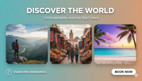 travel destinations adventure trips explore world travel promotion journey inspiration travel campaign global exploration scenic travel wanderlust theme vacation ideas travel lifestyle modern design horizontal format vibrant colors trip planning tourism concept digital banner scenic visuals social media layout travel showcase prompt google gemini nano bananaImagine Buddy