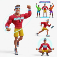 fitness coach mascot athletic human sky blue eyes muscular build motivational grin 3d rendering neon palette training pose sports gear whistle accessory energetic stance breathable texture active lifestyle bold colors studio background modern fitness branding strong personality dynamic character design mascot prompt google gemini nano bananaImagine Buddy