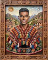Andean retablo style portrait in mountain village