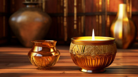 Stunning gold candles to set the mood, diwali festival stock image, diwali festival ai prompt