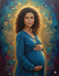 Symbolism encaustic painting of pregnant woman in luminous abstract space google gemini prompt