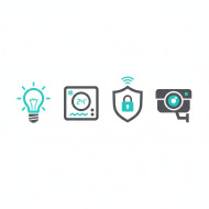 iot icons smart home icon light icon thermostat icon security icon camera icon connected device flat design vector icon home automation web interface technology concept cyan gray palette control panel digital system ui icon set prompt google gemini nano bananaImagine Buddy