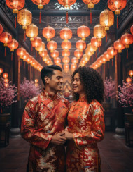 Couple celebrating lunar new year in lantern lit hall google gemini prompt