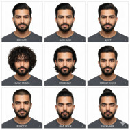 Indian man 3x3 hairstyle grid with nine different styles google gemini prompt