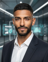 Futuristic hub corporate influencer executive portrait google gemini prompt