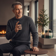 christmas celebration mature man perfume lifestyle minimalist style festive portrait winter holiday luxury fragrance modern interior soft lighting editorial style cashmere outfit pine decor cozy mood masculine elegance lifestyle shoot festive season cinematic tone shallow depth realistic skin natural pose prompt google gemini nano bananaImagine Buddy