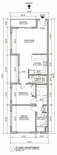 Apartment floor plan 17x45 ft family layout google gemini prompt