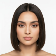 corporate woman professional woman collarbone lob medium straight hair cool mocha brown hairstyle try on photorealistic hair studio lighting professional portrait beauty portrait polished look modern hairstyle hair texture business style hair design hair modeling elegant style confident look workplace fashion prompt google gemini nano bananaImagine Buddy