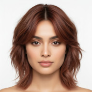 fashion conscious woman young woman wolf cut medium wavy hair copper rose brown hairstyle try on photorealistic hair studio lighting professional portrait beauty portrait trendy hairstyle edgy look hair texture hair design modern fashion layered cut hair modeling self expression chic style creative hairstyle prompt google gemini nano bananaImagine Buddy