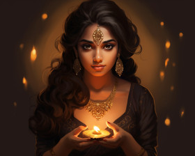 Beautiful girl with diya candlelight, diwali festival stock image, diwali festival ai prompt
