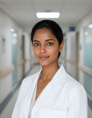 medical researcher scientist healthcare professional laboratory medical focused adult hospital hallway neutral surfaces softly diffused background wide aperture controlled lighting professional attire research clinical environment medical professional laboratory work doctor prompt google gemini nano bananaImagine Buddy