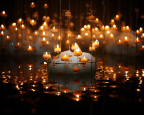 Small white candles floating in water for diwali, diwali festival stock image, diwali festival ai prompt
