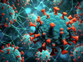 Photo 3d render of an abstract medical background with low poly virus cells on particle design, health and medical stock image