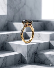 Diamond ring on marble blocks with geometric studio lighting google gemini prompt