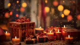 Diwali celebration with candles and gifts, diwali festival stock image, diwali festival ai prompt