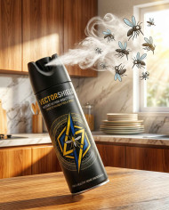 insect spray aerosol can mosquito control spray action kitchen table indoor setting pest control motion effect morning light problem solution dynamic scene home use prompt google gemini nano bananaImagine Buddy
