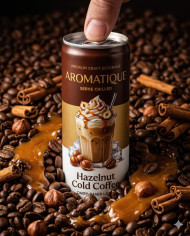 Energy drink macro with coffee beans caramel and cinnamon google gemini prompt