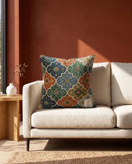 Velvet cushion on modern sofa scandinavian interior design google gemini prompt
