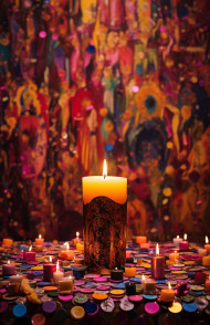 Candlelight casting a rainbow glow, diwali festival stock image, diwali festival ai prompt