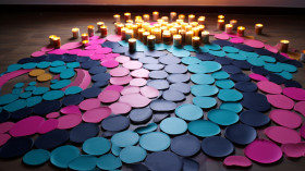 Brightly colored rangoli with candles, diwali festival stock image, diwali festival ai prompt