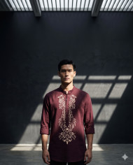 High fashion model in maroon kurta in modern gallery google gemini prompt