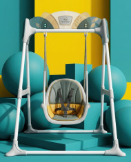 Modern geometric stage baby swing bold advertising scene google gemini prompt