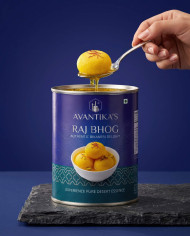 sweets tin dessert close up syrup dripping spoon serving indian sweet indulgent food glossy texture dark stone slab backlighting food photography rich taste gourmet prompt google gemini nano bananaImagine Buddy