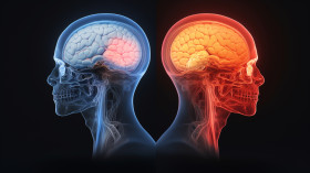 Red light illuminates human brain, human brain image