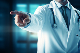 Medical doctor pointing her finger, health and medical stock image