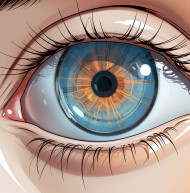 Contact lens detects eye diseases, medical images stock