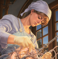Surgeon uses robotic arm for delicate operation, medical images stock