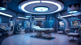 Calming blue accents in medical setting, medical images stock