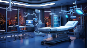 A hospital with an operating table and some equipment, medical images stock