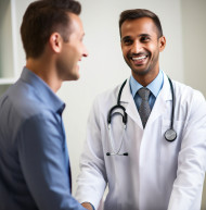 Close-up portrait of a doctor and a patient shaking hands, medical images stock