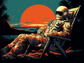 An astronaut resting on mars in a beach chair