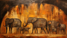 Cavern painting of a group of animals in a cave, cave painting style