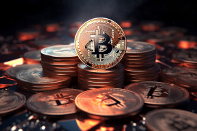 A photo of a digital cryptocurrency and blockchain technology concept, corporate photography