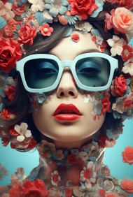 digital collage style art work design concept abstract women idea modern person exclusive pink creative imaginebuddy beautiful flower colorful glasses girl makeupImagine Buddy
