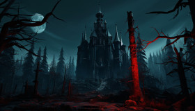 background grimdark style cartoon scary horror art landscape light building old night urban cityscape town view imaginebuddy moon castleImagine Buddy