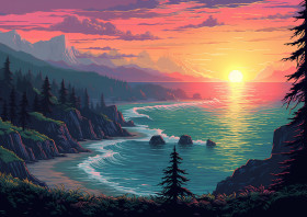 Pixel art artwork at sunset, pixel style art