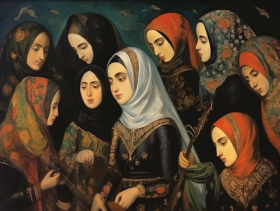 imaginebuddy painting qajar art pattern creative artistic unique imaginative frame inspiring dreamy background texture style king queen man womanImagine Buddy