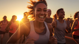 A group of people running a 5k race, mental health