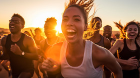 Runners cheering after finishing 5k race, mental health